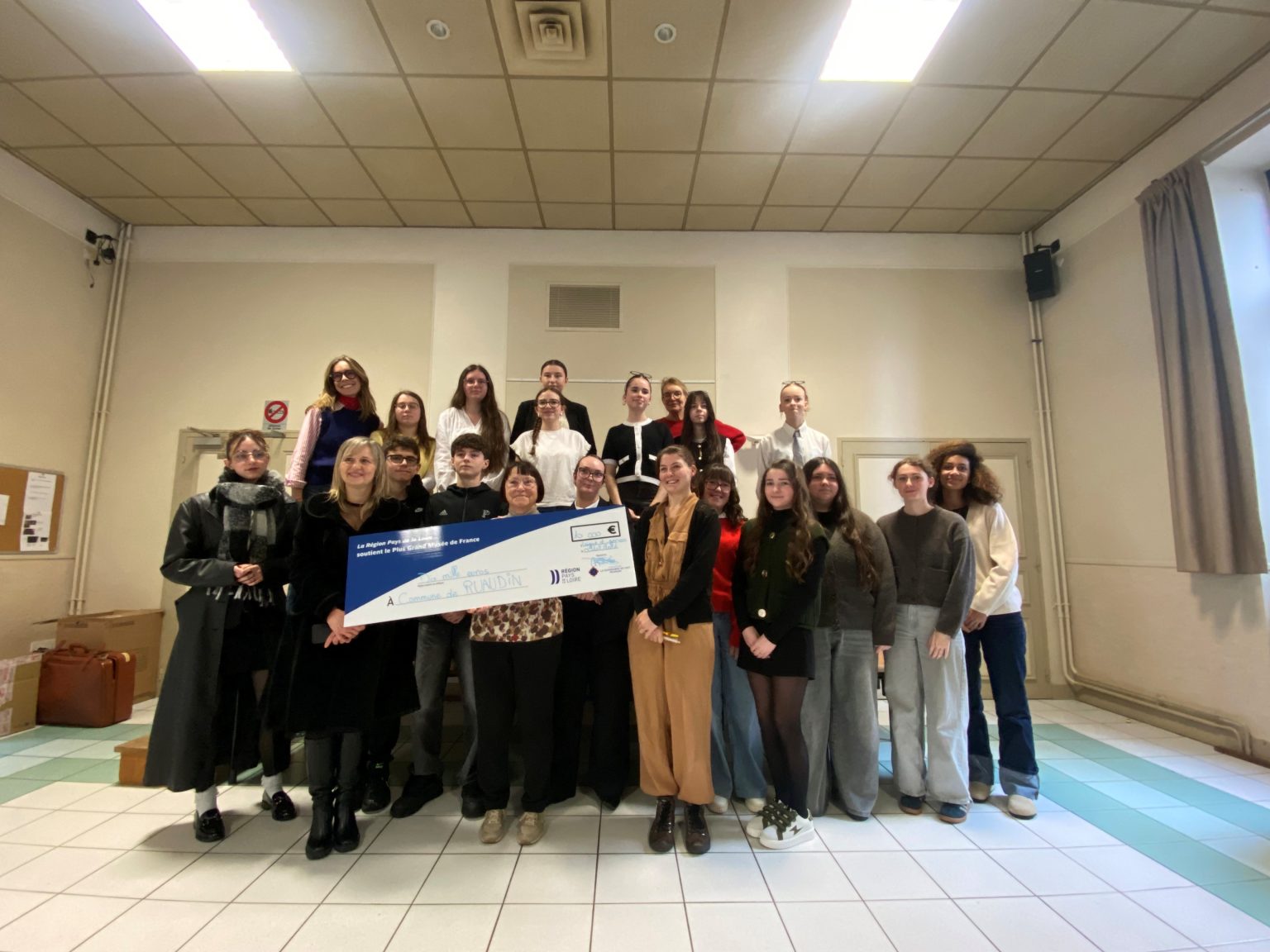 Après avoir étudié 5 oeuvres du patrimoine sarthois, une classe de seconde du lycée LES HORIZONS de LAIGNE ST GERVAIS a attribué la dotation régionale de 10 000 € au monument aux morts de Ruaudin pour permettre sa restauration.